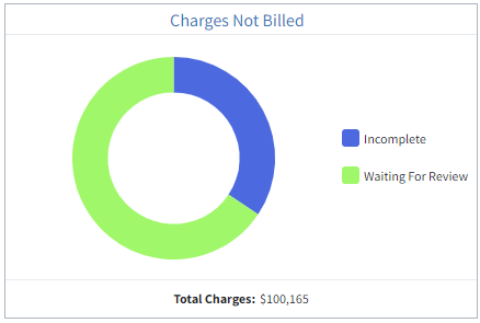 Use the Charges Not Billed Dashboard to efficiently drill down into charges awaiting billing to insurance, including those marked as Waiting for Review and Incomplete.