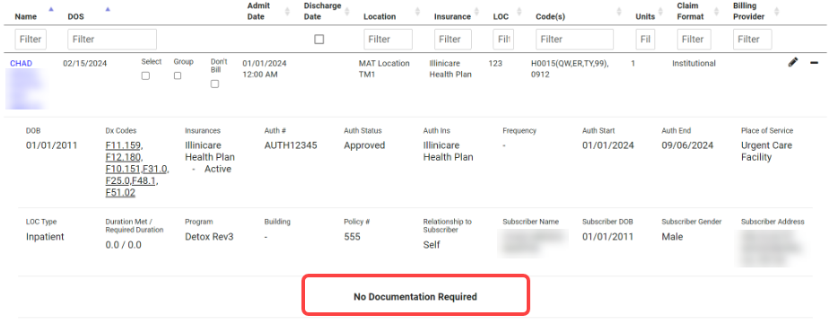 - Billing: The expanded display for billable days that do not require documentation now includes the title so that billers can easily double-check that it is correct, increasing efficiency.