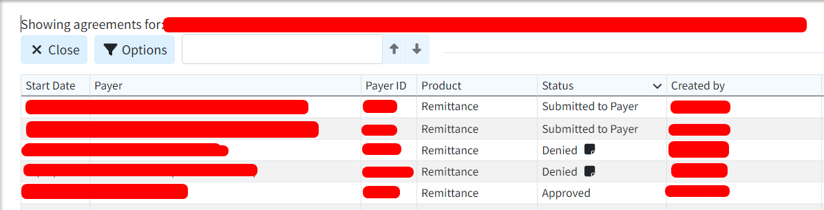 If pending, contact the payer to determine why the agreement hasn’t been approved.