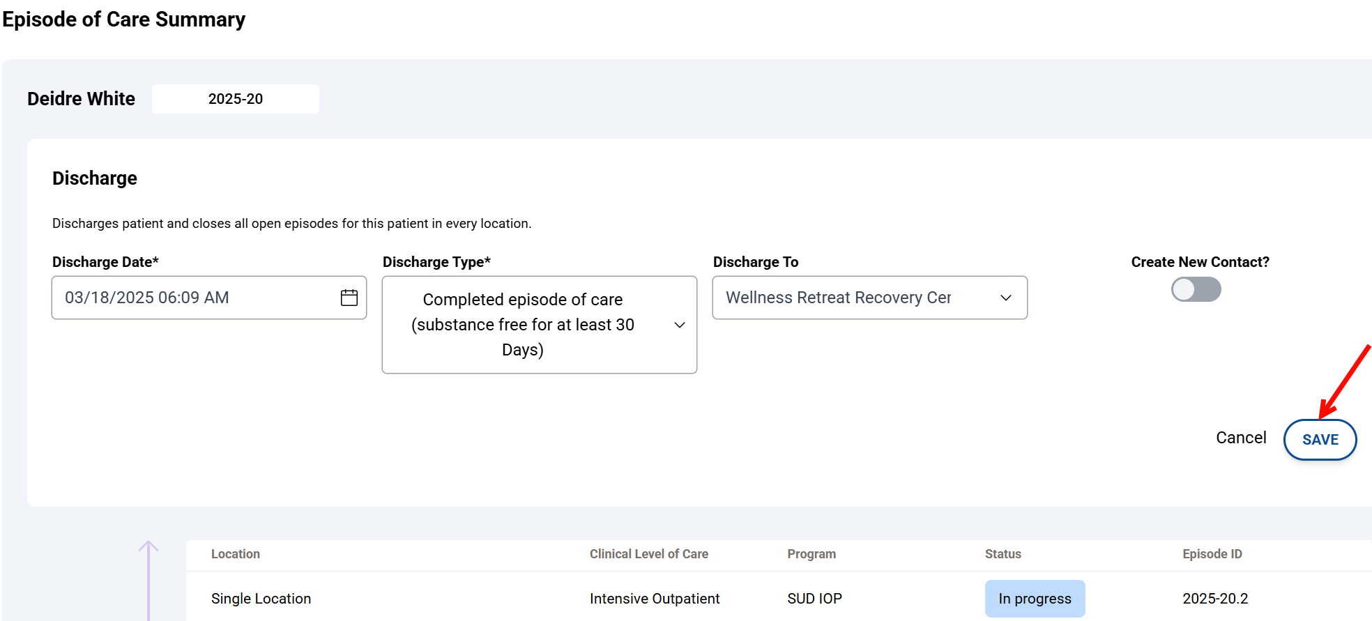 Required Permissions: Super Admin, users with the Allow Discharge/End Episode feature enabled in the user profile. Click here to learn more about user permissions.