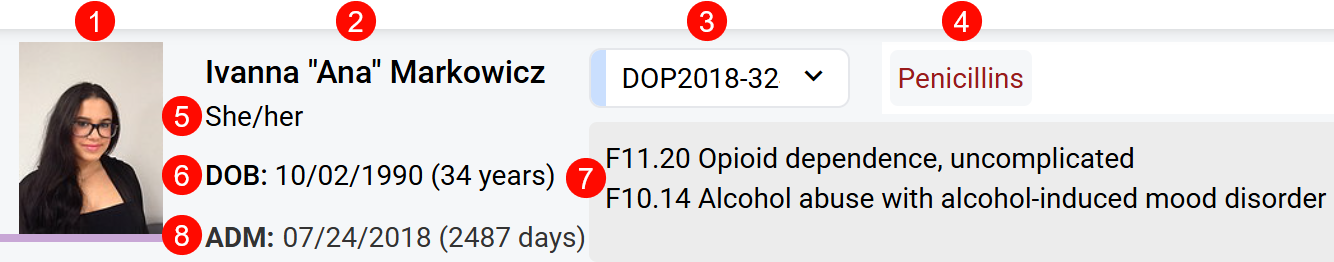 - Patient Profile Picture: Photo taken at the facility or sent via the patient portal during intake.