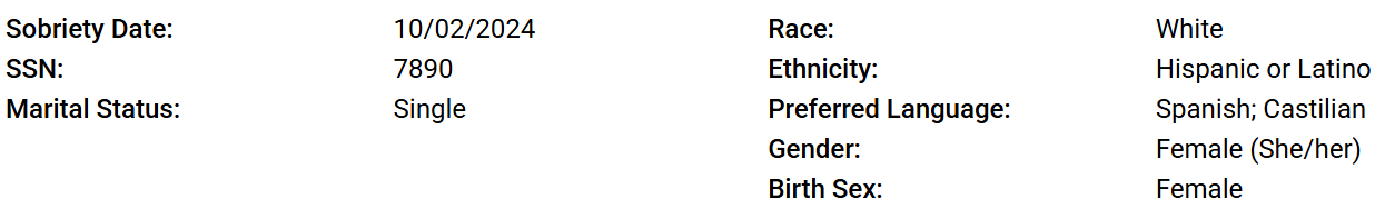 - Sobriety Date: Enable this feature to track the patient’s sobriety.