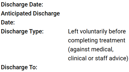 - Discharge Date: This field remains blank until the discharge workflow is completed.