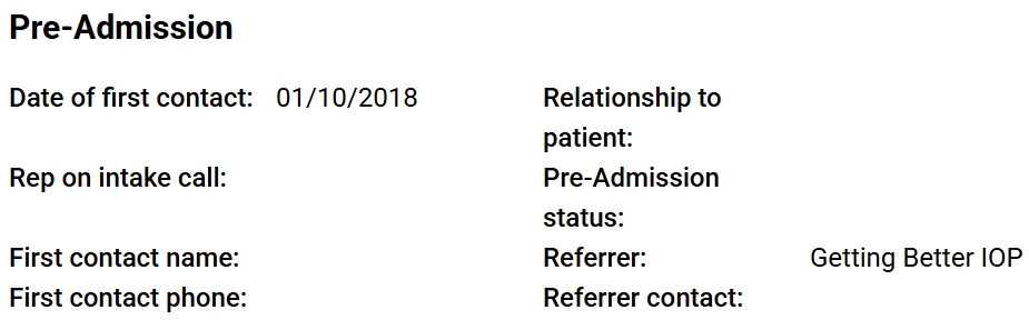 - Relationship to Patient: Describes the relationship to the patient of the person who first contacted the facility.