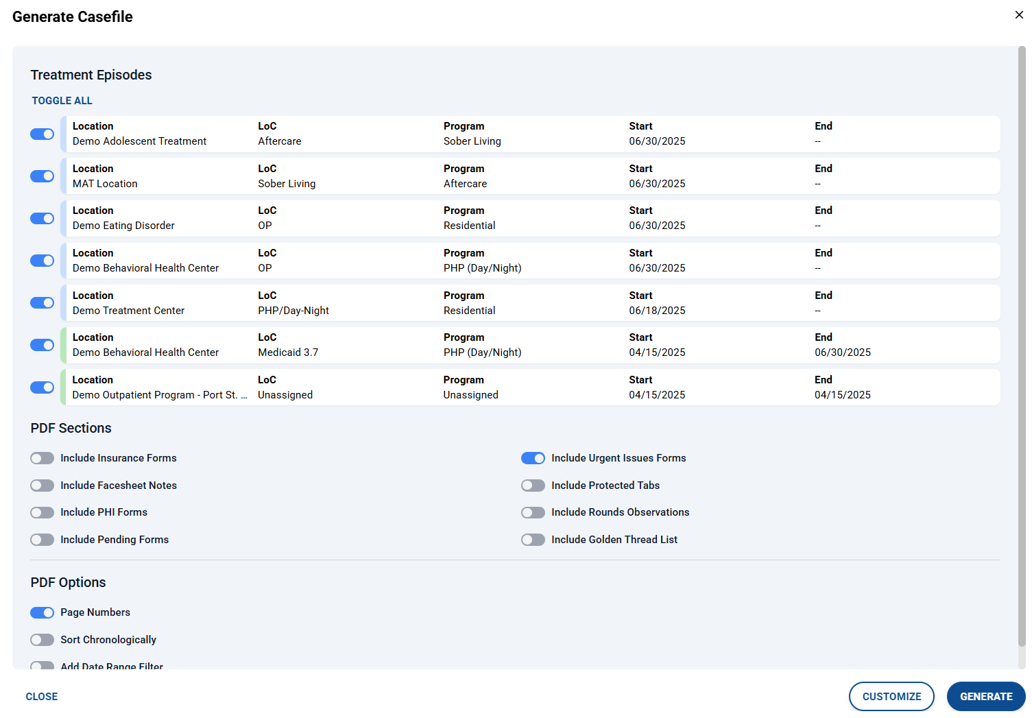 PDF Casefile: Create a PDF Casefiles by Treatment Episodes.