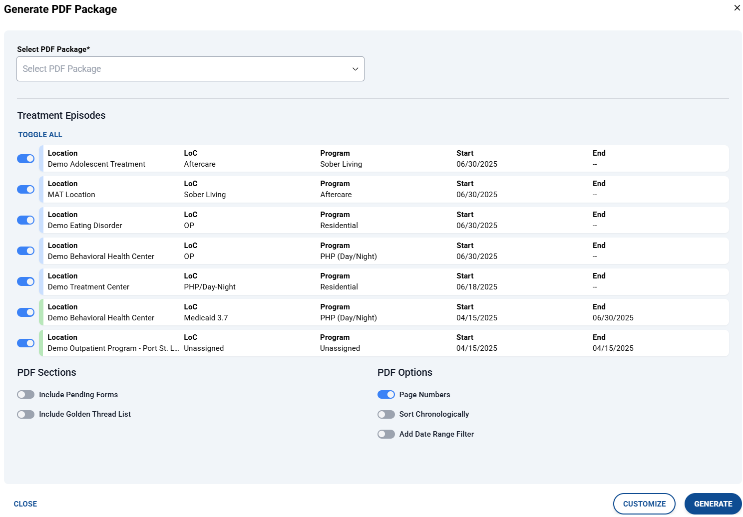 PDF Package: Create a PDF Package by Treatment Episodes.