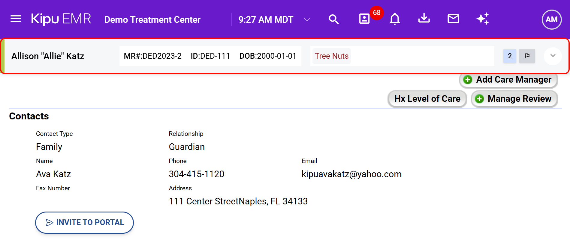 - Patient Full name: Displays the patient's first, last name, and preferred name.