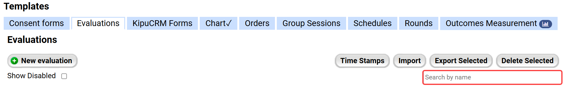 Billing: Added a name search on the Evaluation Templates page which will help users locate templates more quickly. For more information on evaluation templates, click here.