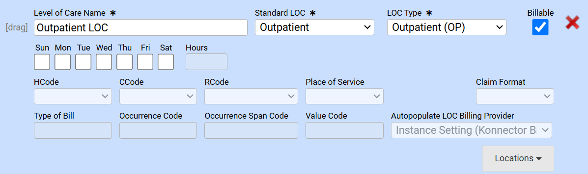 Billing: Disabled the outpatient level of care type billable settings. This update is in preparation for new billable, outpatient workflows. For more information on Level Of Care Settings, click here.