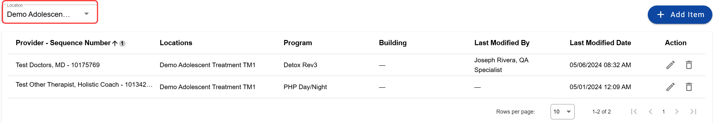 - Billing: Added a Location filter to the Provider Settings page for more convenient and intuitive filtering by location. This update helps reduce clicks by removing the need to change the location bar constantly. For more information on the Provider Services tab, click here.