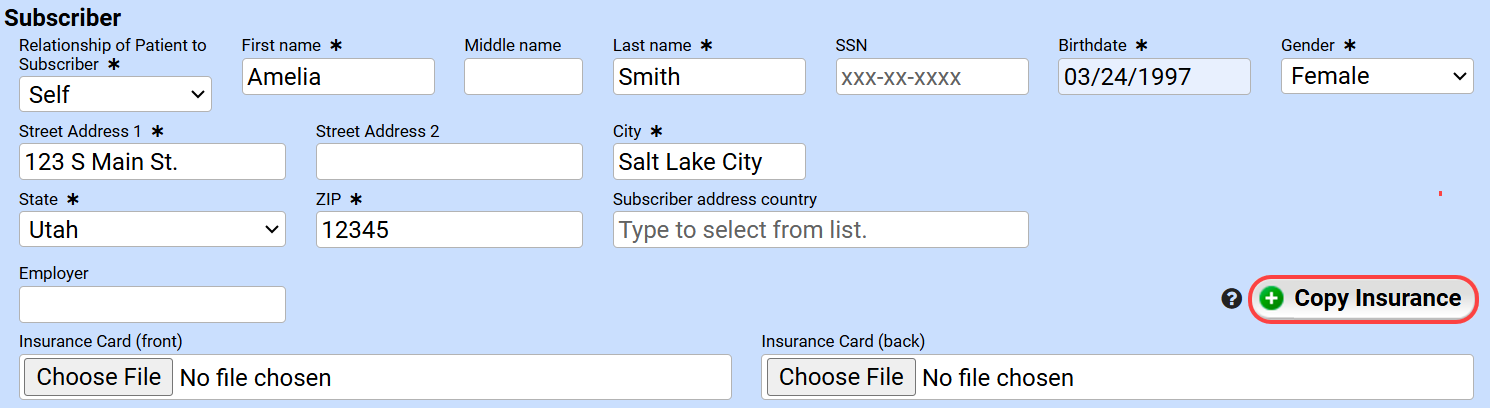 - Billing: Added a new Copy Insurance button which allows users to create a new insurance and copy certain fields from the existing one. For more information, check out this article.