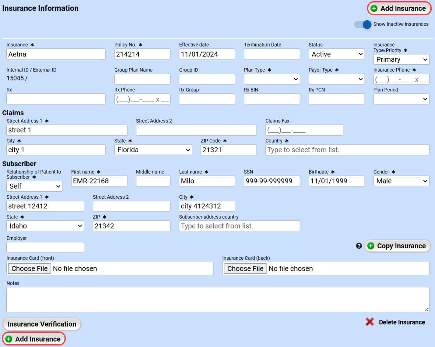 Facesheet: Fixed an issue where users could not change the patient’s insurance status to Inactive when there was no alternative Primary insurance selected in the Lab Testing section.