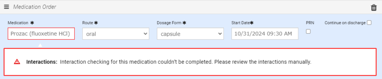 - Doctor’s Orders: Users will see the message “Interaction checking for this medication couldn’t be completed. Please review the interactions manually.” when an interaction timeout occurs. For more information on drug interactions, click here.