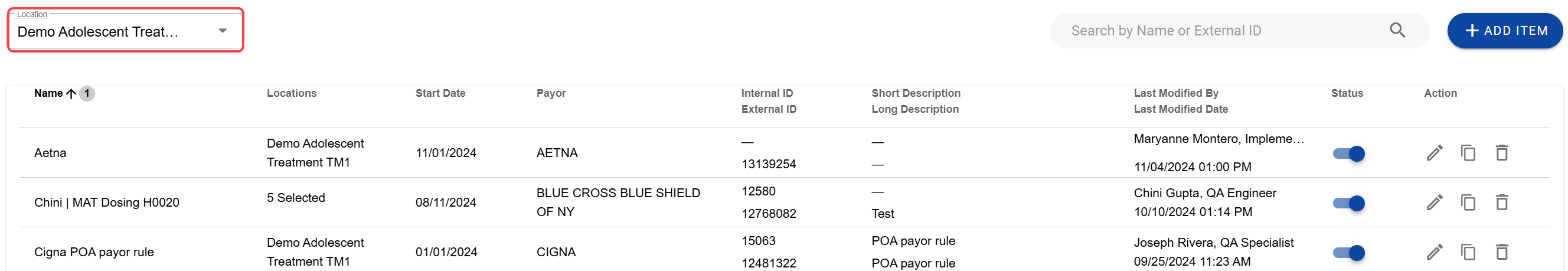 - Billing: Added a Location filter to the Payor Rules page to allow more convenient and intuitive filtering by location. This update helps reduce clicks by removing the need to change the location bar constantly. For more information on the Payor Rules tab, check out this article.