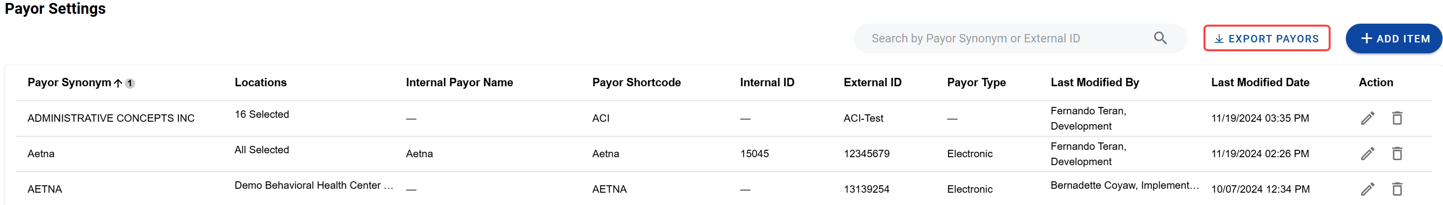 Billing: Added the ability to export the payor list from the Payor Settings screen. This addition should help users who want to audit their payor list. For more information on Payor Settings, click here.