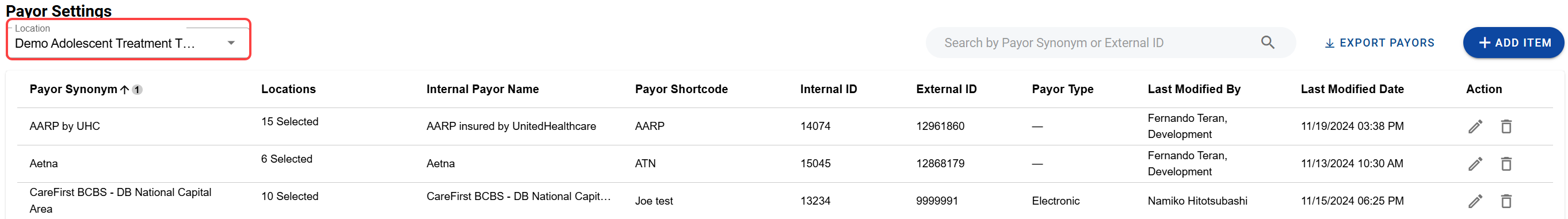 Billing: Added a Location filter to the Payor Settings page to allow more convenient and intuitive filtering by location. This update helps reduce clicks by removing the need to change the location bar constantly. For more information on the Payors tab, click here.