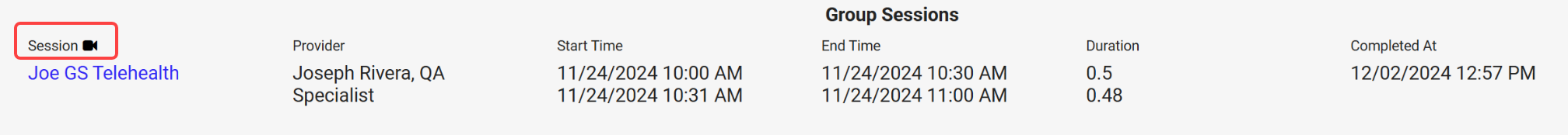 Billing: Billers for facilities using Scheduler and integrated billing will now see the telehealth indicator on telehealth group sessions when they expand the billable item. This addition should greatly reduce the review process for these sessions.
