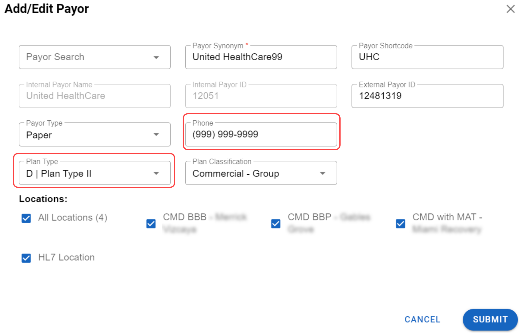Billing: Added the Insurance Plan Type and Phone as fields to the Payor Settings library. This addition allows users to set a specific value as the default so that it automatically populates when selecting that payor from the insurance look-up list. For more information on adding/editing payors, check out this article.