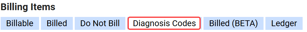 - This section will remain empty until modifications are made to a billable item's dx codes and saved as the default for that billing type.
