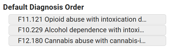 - Once defaults have been saved, they will appear on the Diagnosis Codes tab.