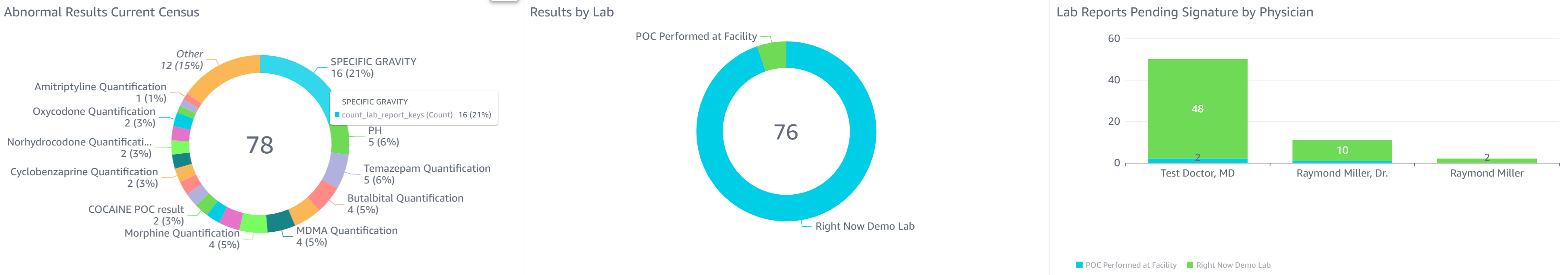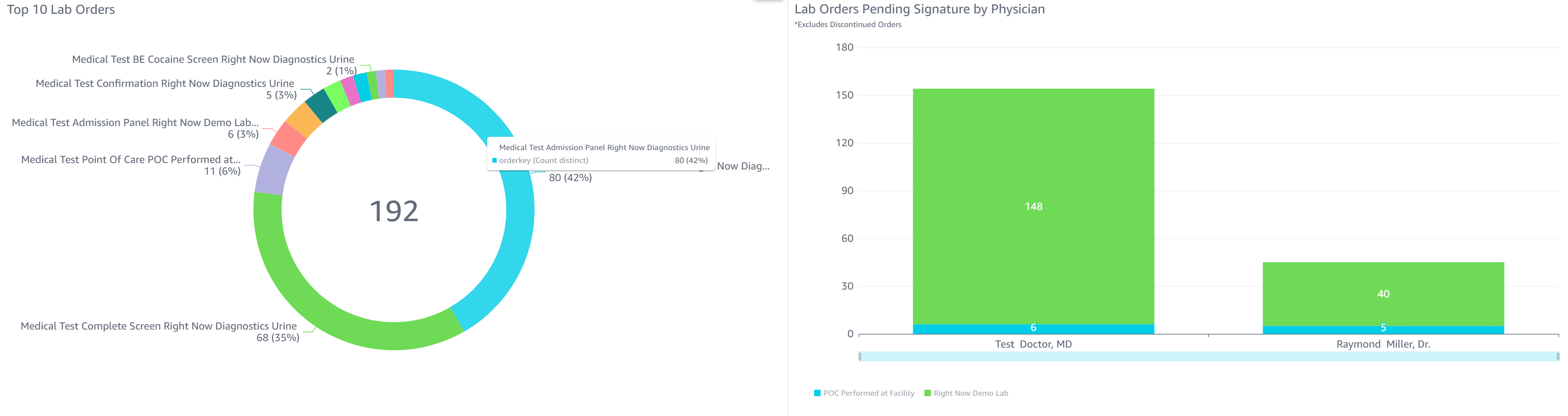 - Lab Orders Pending Signature by Physician: This chart shows which physicians have lab orders awaiting their signature broken down by lab