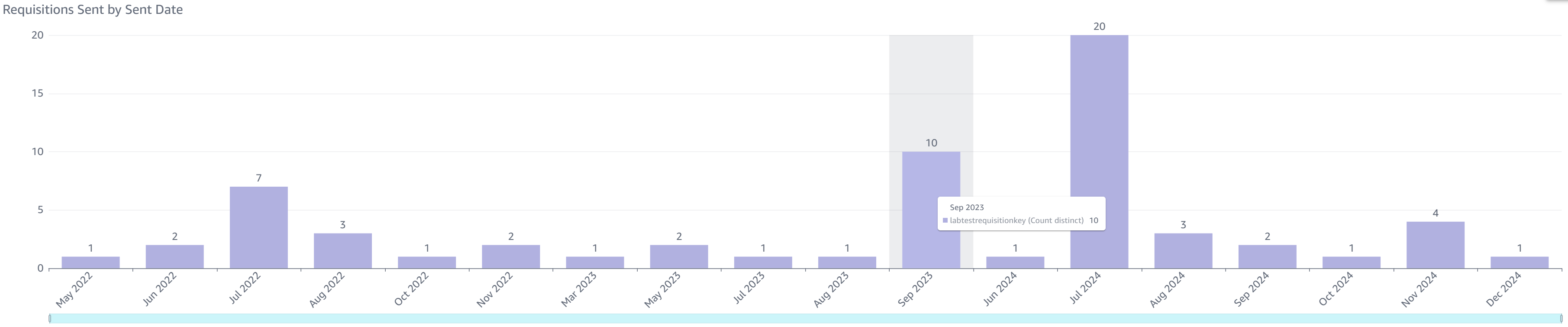 - Requisitions Sent by Sent Date: This chart displays requisitions sent by the send date.