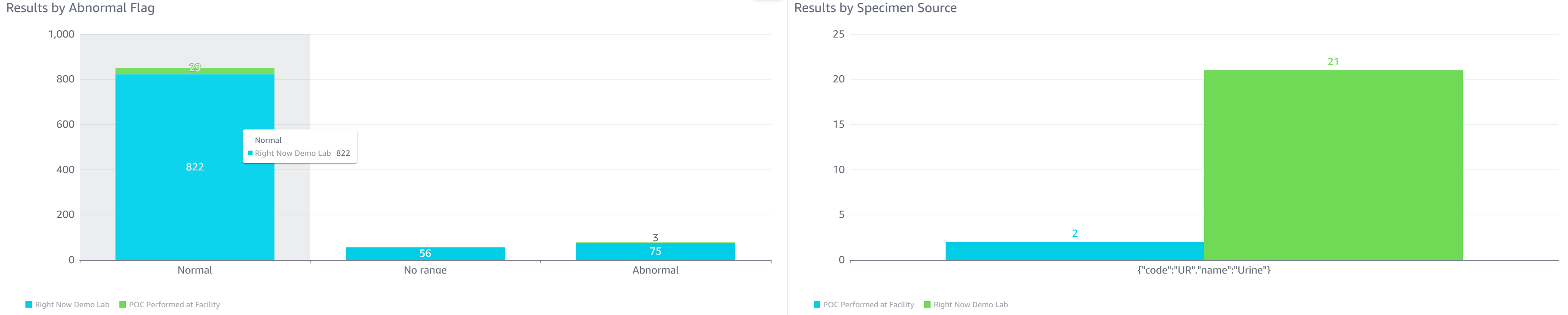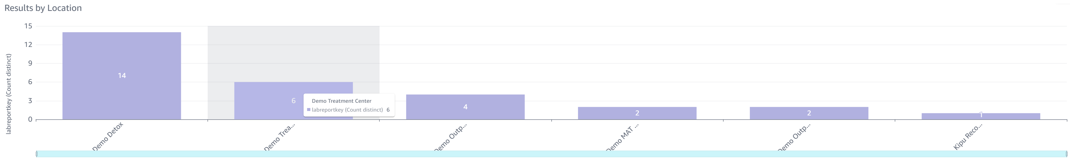 - Results by Location: Total number of lab results broken down by location