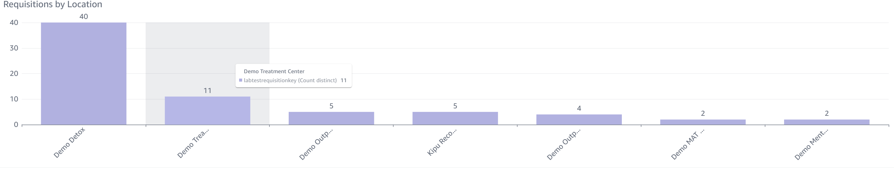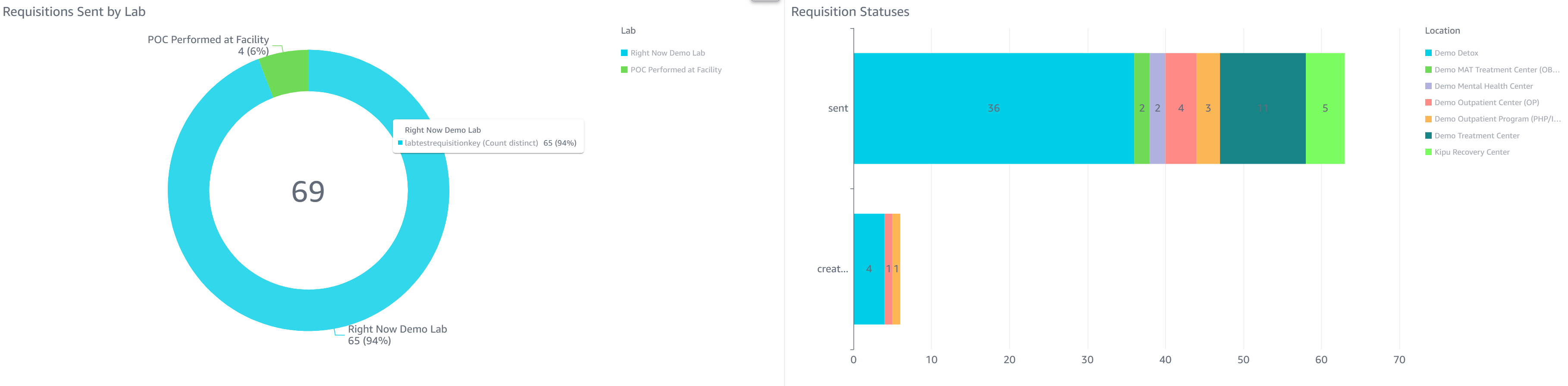 - Requisitions by Location: This chart breaks down the number of lab requisitions from each location