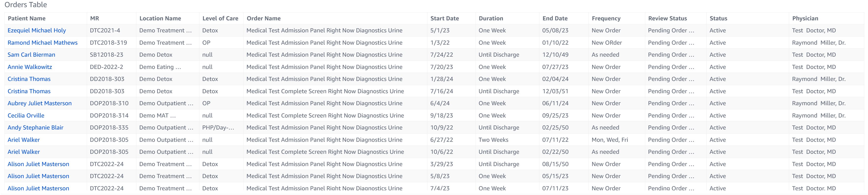- Physician: The name of the physician who ordered the test