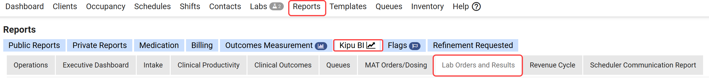 To navigate to the tab, click on Reports > Kipu BI > Revenue Cycle.