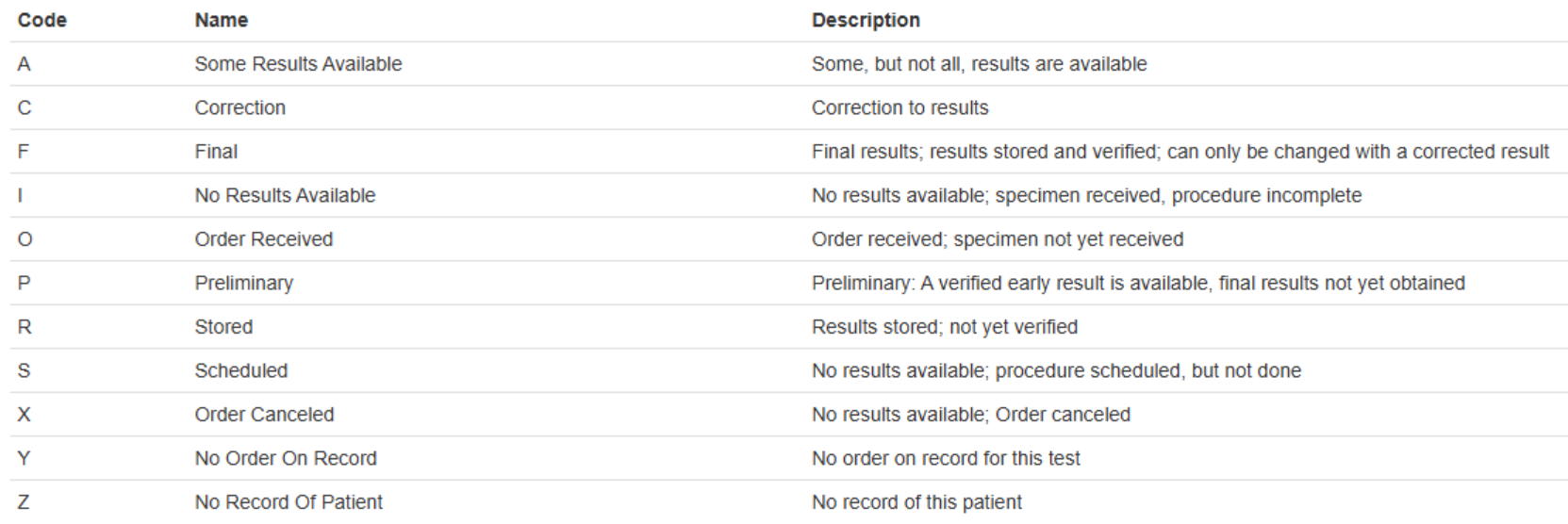 Result Status: The result status of the test provided by the lab