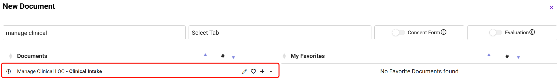 - Add the Manage Clinical LOC form to the patient’s chart using the centralized documentation icon.