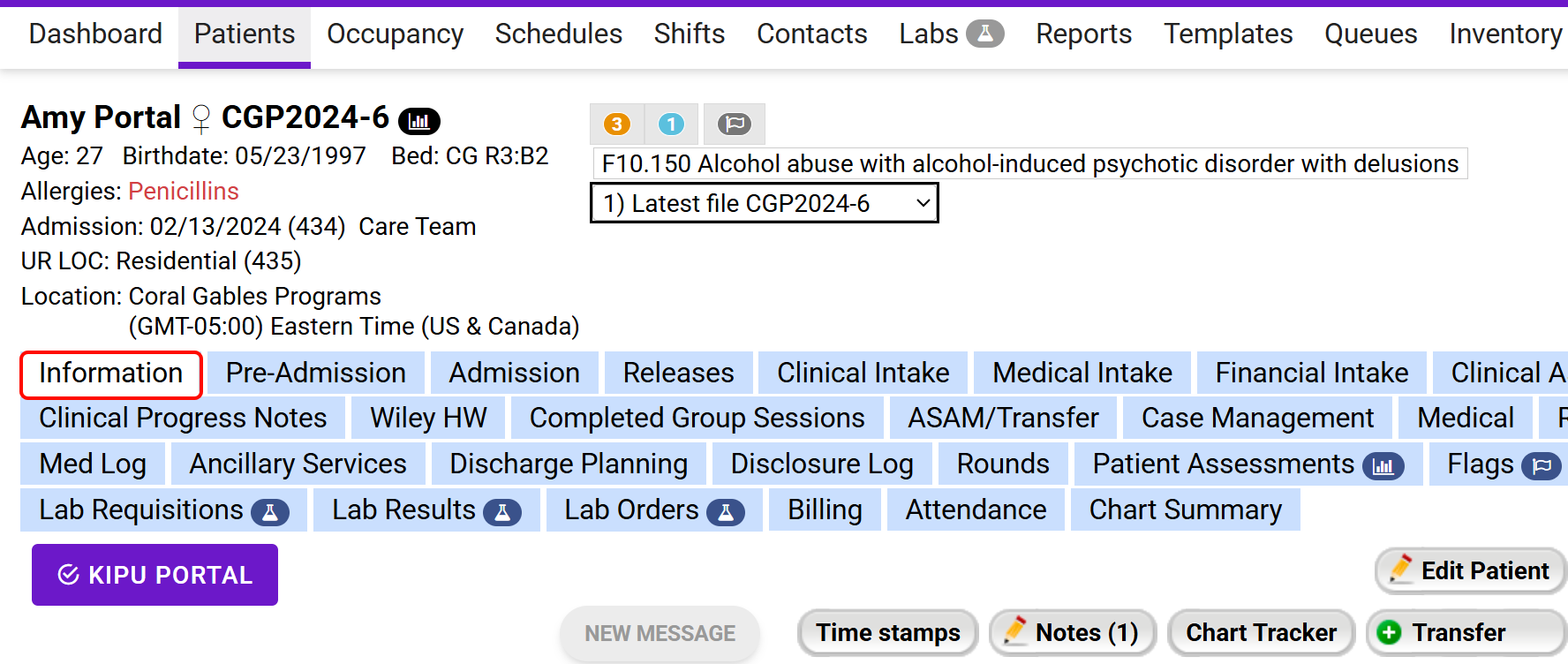 During a patient’s treatment, clinicians often initiate care at a higher Level of Care (LOC), such as Detoxification (Detox), to facilitate medical and psychological stabilization. Once stabilization is achieved, the patient transitions to a lower LOC based on their clinical needs. In Kipu, these transitions are carefully documented to ensure compliance and accuracy.
