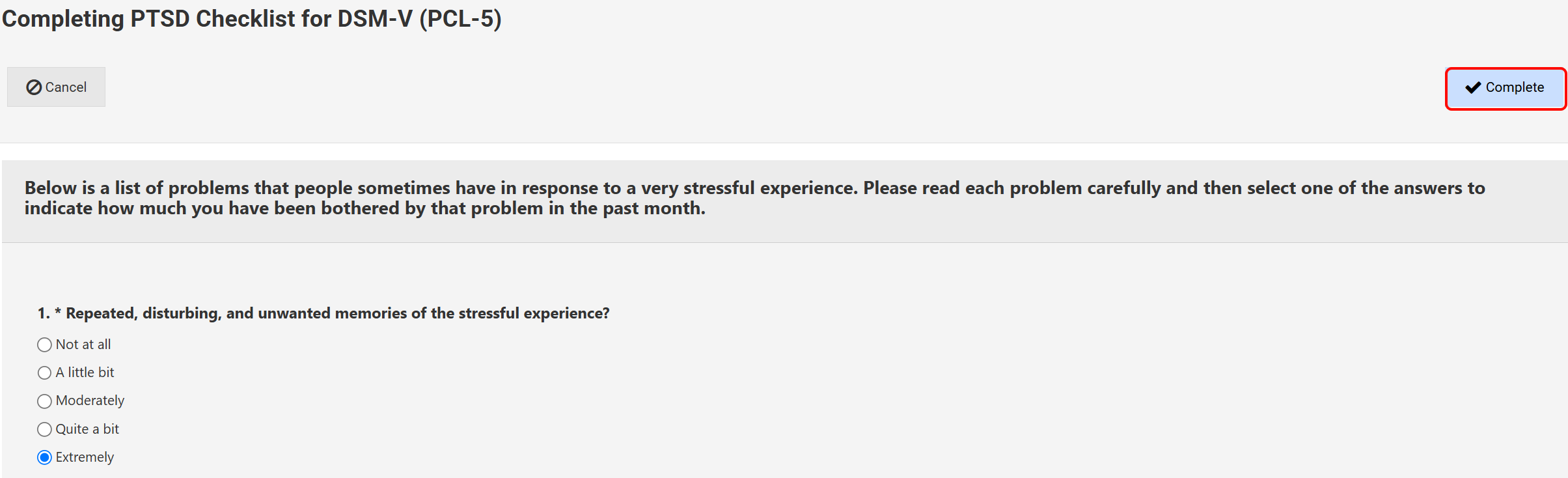 - The user enter the patient’s responses directly in the chart and complete the assessment.