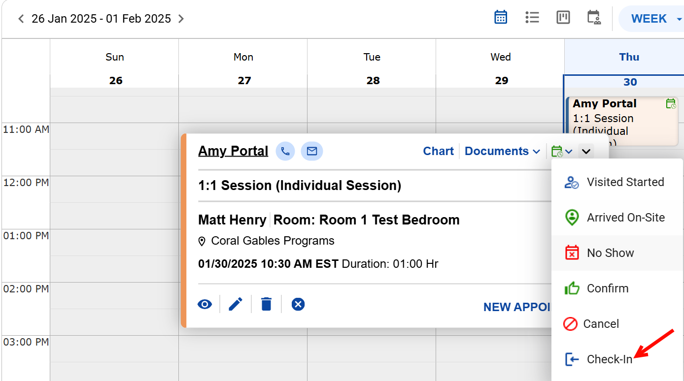 - Click on Check-In once you start the 1:1 session from the Scheduler.