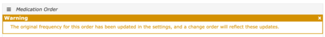 Doctor's Orders: An alert will now display in a Change Order if the frequency has been changed under Settings > Orders > Medication/Action Order Frequencies since the creation of the original order. For more information on order frequencies, check out this article.
