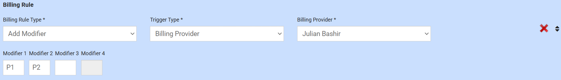 Billing: Added the ability to create a payor rule that assigns modifiers based on Billing Provider. Click here for more information.