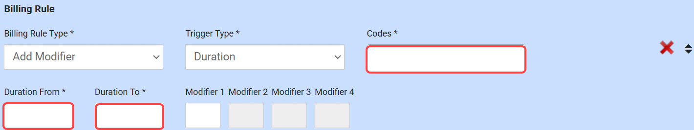 Billing: Added the trigger type Duration so that users can assign modifiers based on the billable item’s total duration. This update means that billers no longer need to manually inspect and add the correct modifier. For more information on this payor rule, click here.