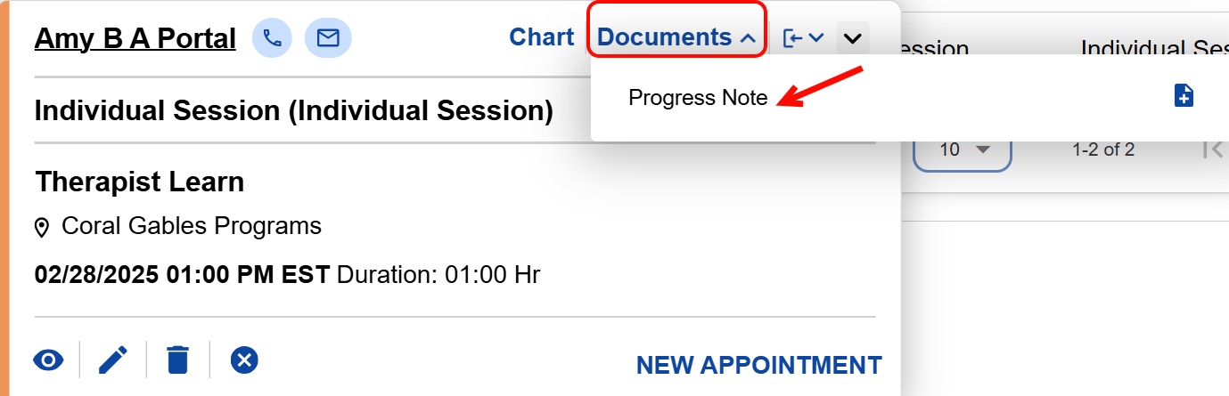 Note: If the progress note is not linked to the appointment card, use centralized documentation to add the progress note to the patient chart.