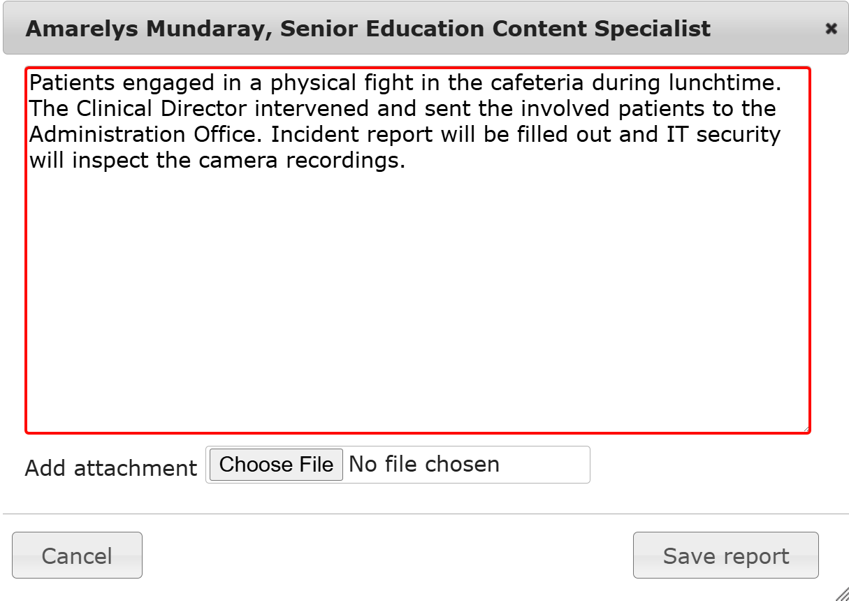 - Enter relevant details, including completed tasks, pending tasks, and significant events. Document the timeline of events and required follow-up actions using free text.