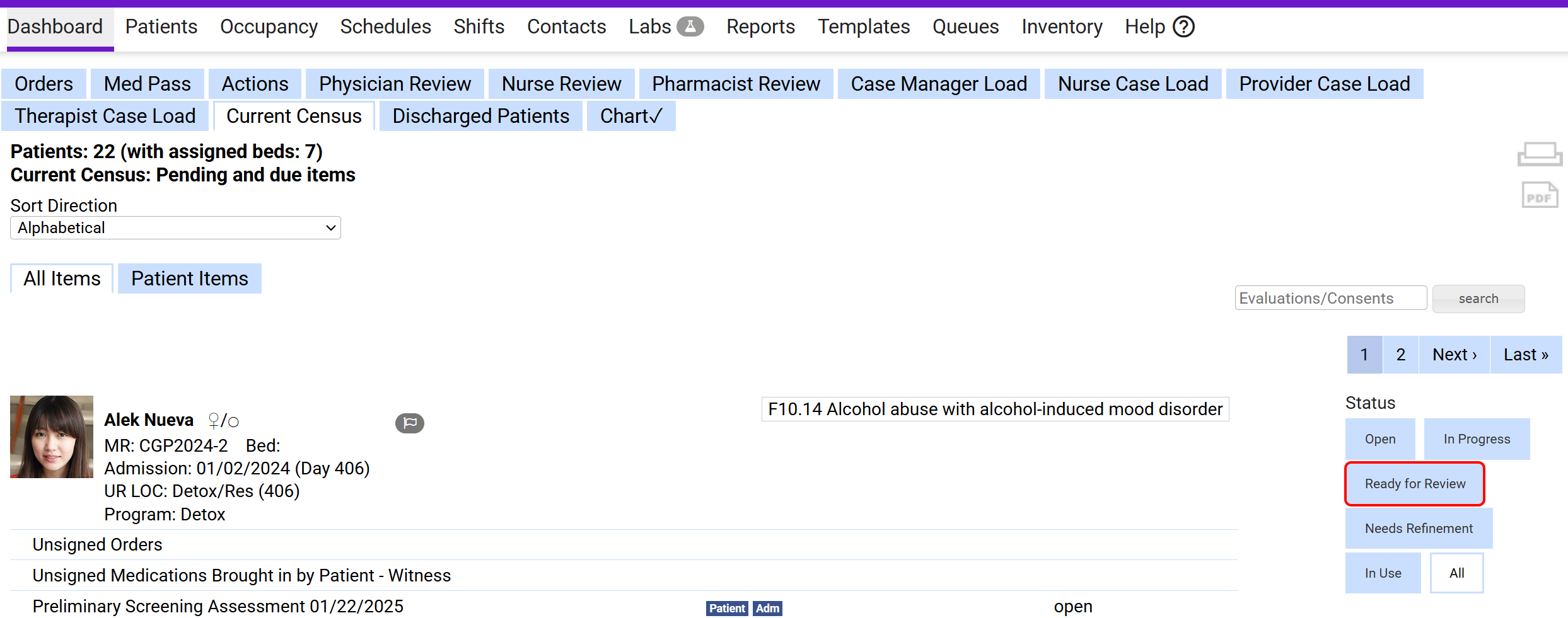 If a licensed provider review is required, the document appears as Ready for Review in the Current Census tab of the Dashboard.