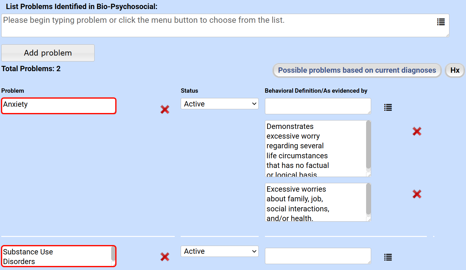 Add treatment modality for each problem.