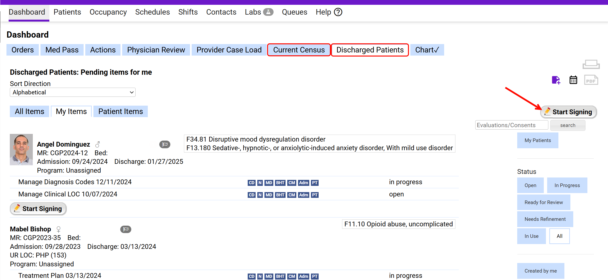 - Alternatively, click Start Signing under each individual patient to review and sign their documents separately.