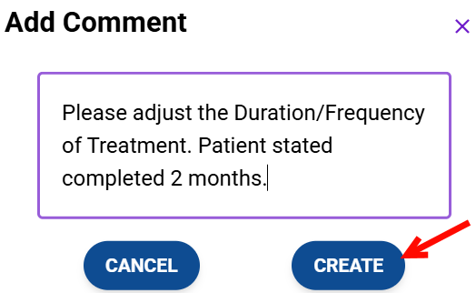 Type the comment or correction related to the highlighted text and click Create.