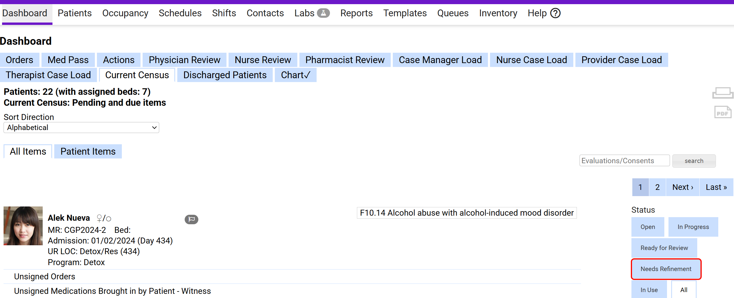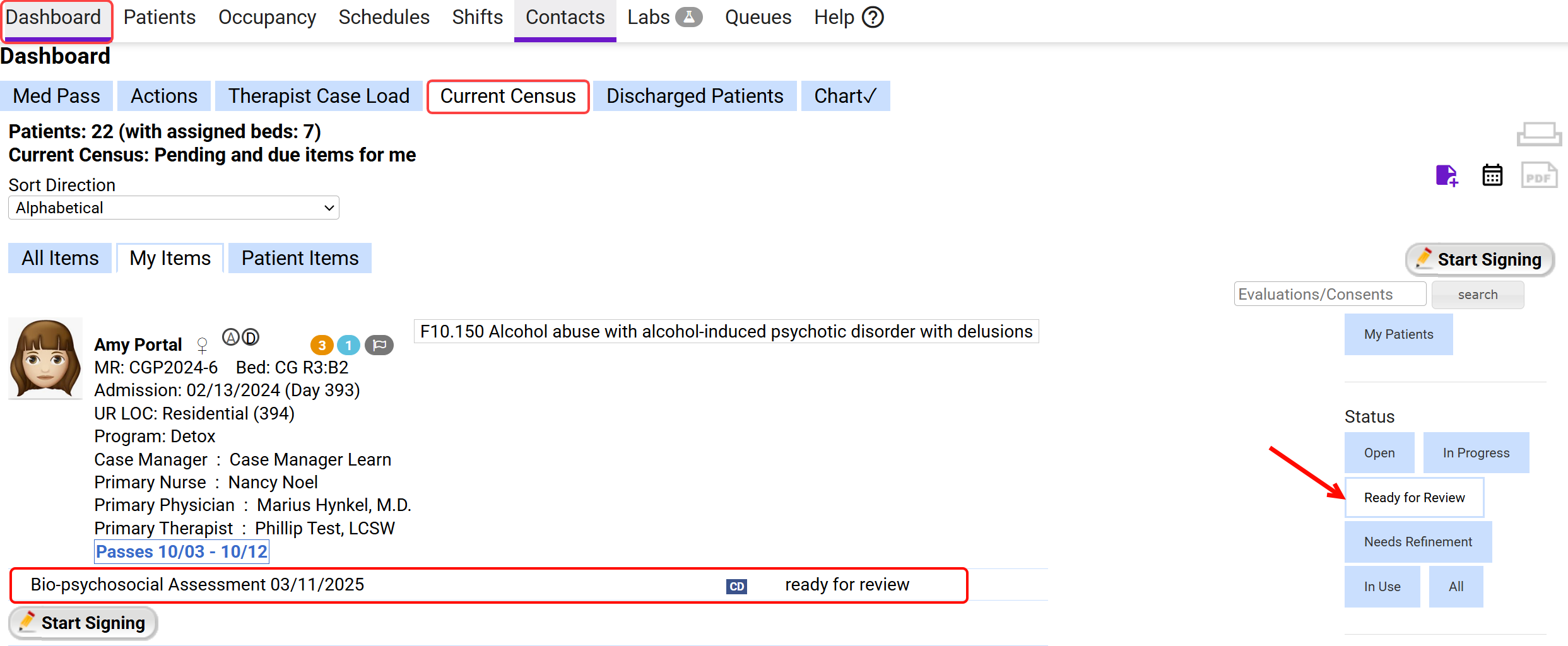- Navigate to Dashboard, select the Current Census tab, and filter by Ready for Review status to locate forms requiring review.