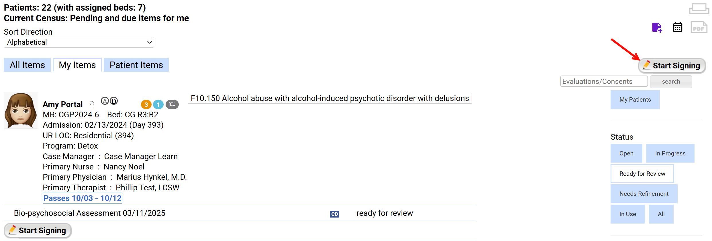 Click Start Signing under each patient to review documentation individually. This opens the document for review.