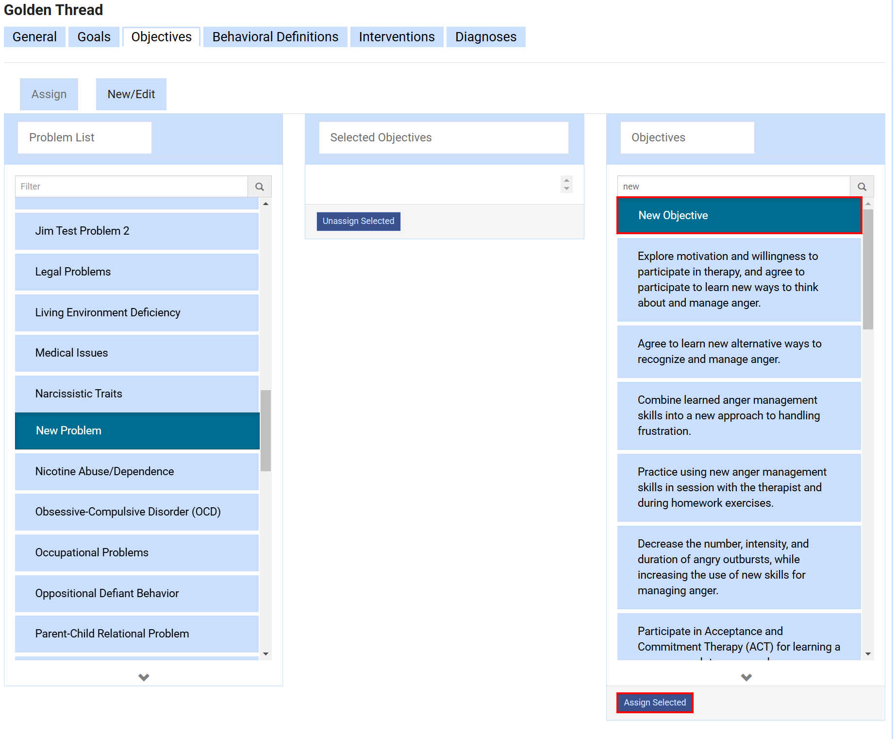 - Select the Objectives tab. Then within the Objectives tab, select the New/Edit button.