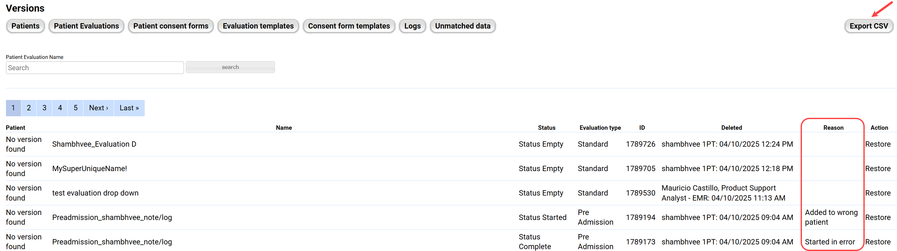Settings/Restore: Added an Export button, which will allow users to export lists of deleted items to CSV. For more information on the Restore tab, click here.