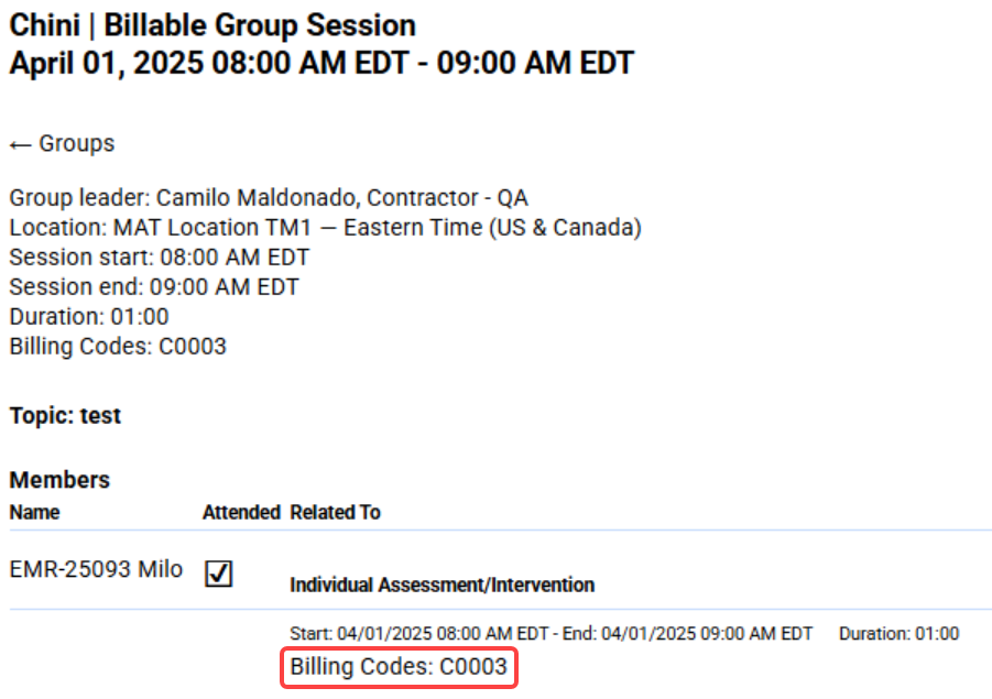 Billing: Updated the warning notifying a user if they are editing an evaluation/group session that has already been used to bill or has been marked as do not bill.