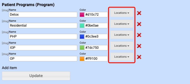 Old View Patient Settings previously did not include any sort of location assignment. |